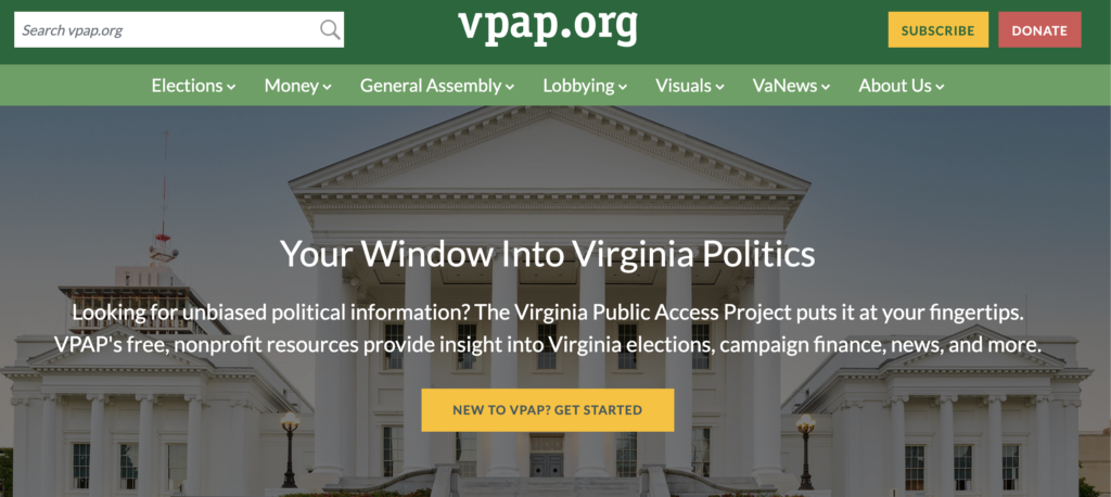 The Virginia Public Access Project websites homepage. (Photo courtesy VPAP)