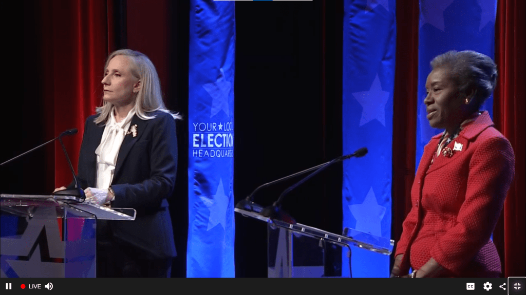 Gubernatorial hopefuls Lt. Gov. Winsome Earle Sears and Abigail Spanberger, former Congresswoman, appeared on stage in person for the first time and probably only time during this election. They answered questions for one hour that ranged from the hated car tax to Jay Jones text messages to the Trump Administration and the ongoing shutdown of the federal government.