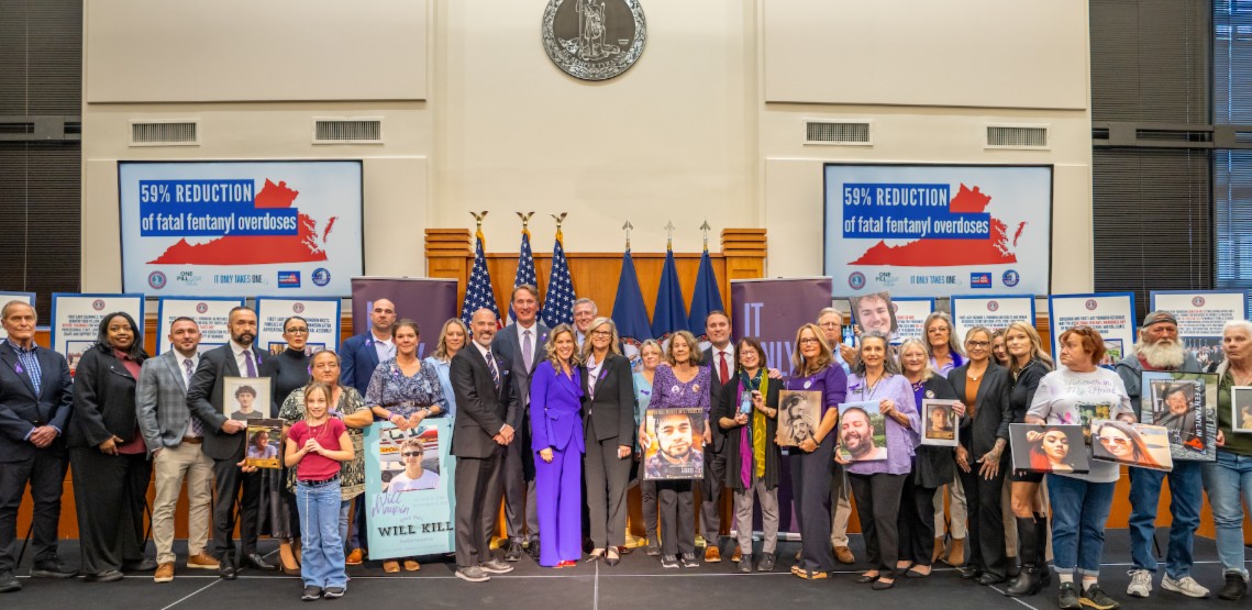 RICHMOND, VA – Governor Glenn Youngkin and First Lady of Virginia Suzanne S. Youngkin joined a wide array of stakeholders and allies today at the Patrick Henry Building to celebrate the nearly 59 percent reduction in fentanyl-involved overdose deaths in the Commonwealth of Virginia today versus January 2022.