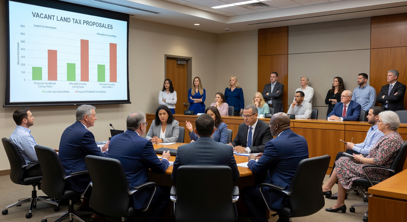 During the public session, one speaker advocated for reduced taxation on undeveloped parcels, arguing it would incentivize property owners and developers to improve the land. ‘Having a lower tax rate on vacant land encourages development and improvements,’ the speaker said, suggesting it could lead to more housing units entering the market.